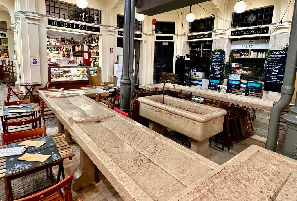 Old Fish Market Marble Components Repurposed in a Mercato Ristorante.