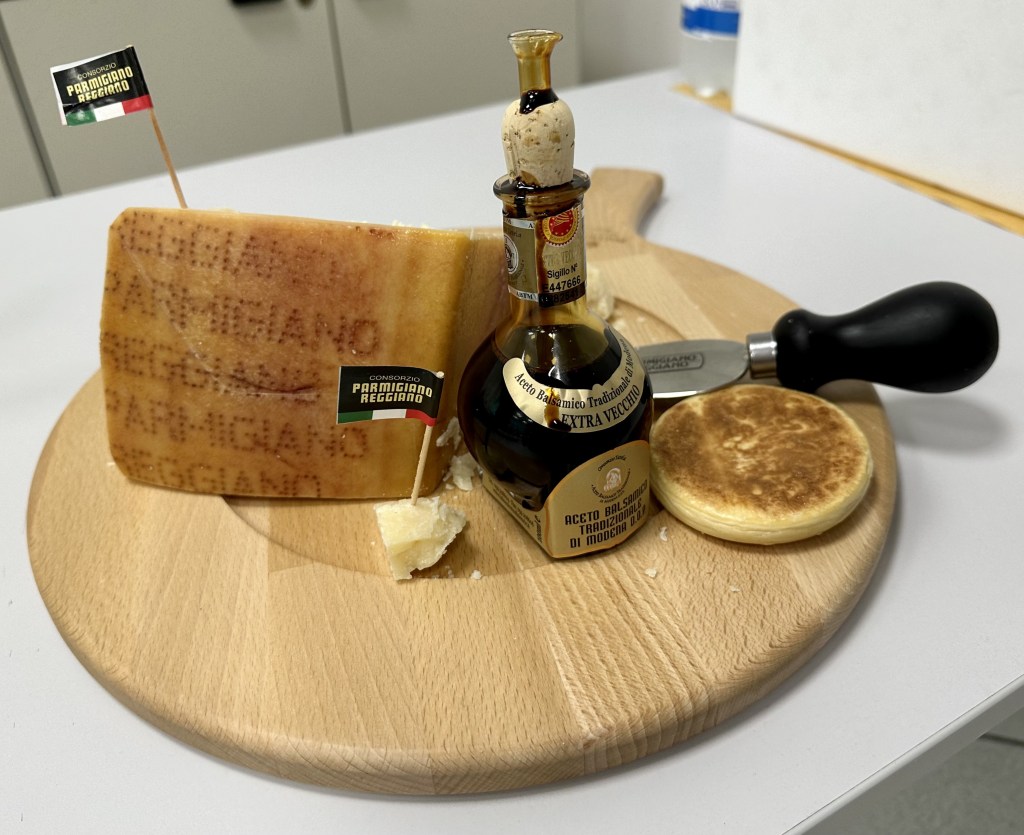 Actual PPM Lunch: Balsamic Vinegar, Tigelle Bread, and Parmesan Cheese.