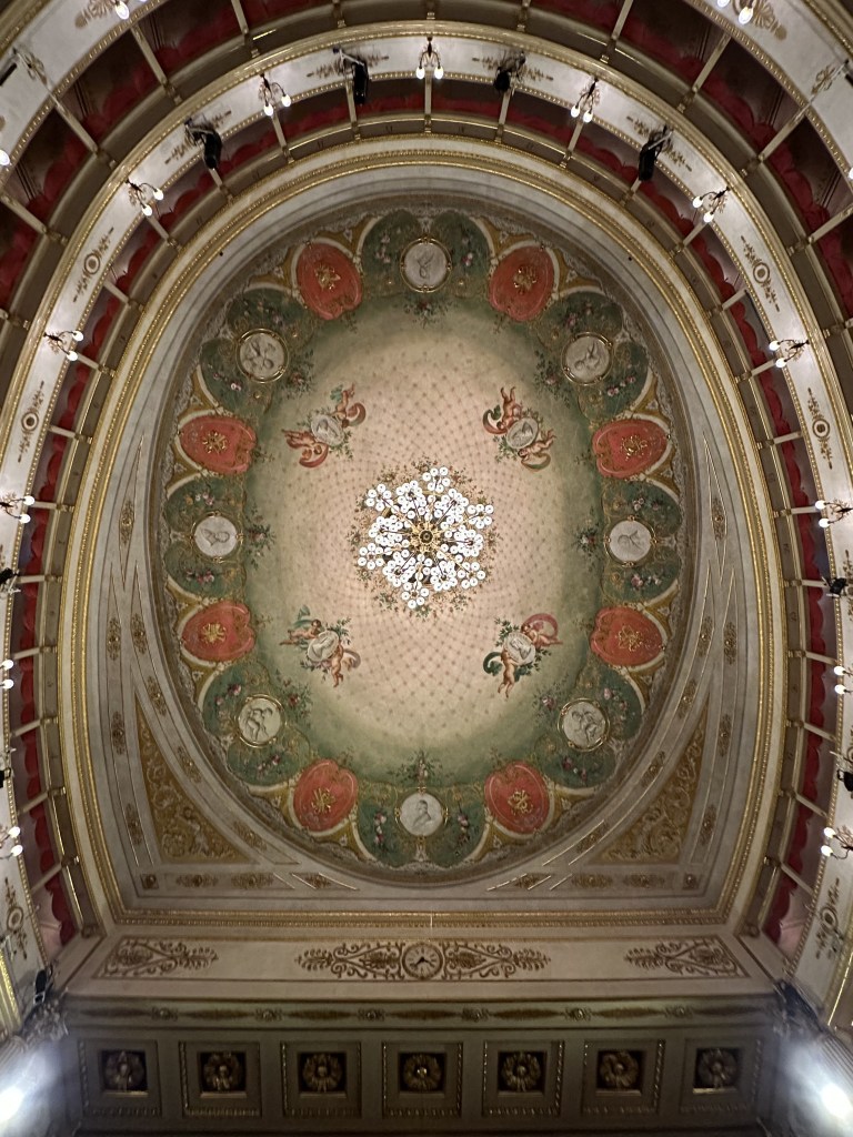 We learned that the floor can be elevated to merge with the stage and become a ballroom. It was asked if the opera house maintains a list of VIPs who use the Ducal Stall and the answer was to the effect of ‘yes, if they’re a VIP.’ We were impressed with Professor Padovani’s knowledge of the engineering/technology stage workings, that is backdrops, beams, curtains, lighting, etc. Has our professor performed on that famous stage? Hmm…