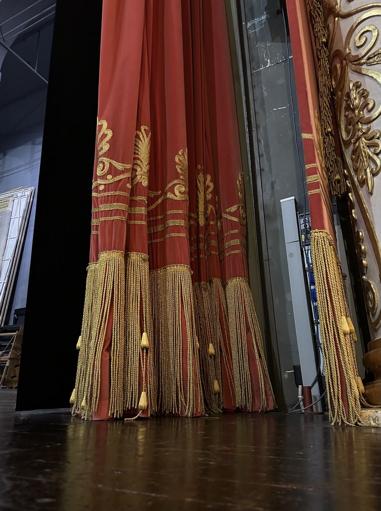 And onto the stalls (US term loges) and stage. Big, bright, and bold – white, red and gold. Throw in some green and a huge, beautiful chandelier. Plus, don’t forget the Ducal Stall, the stall with the giant eagle above it, you can’t miss it. Back then lesser nobles had their own stalls too, and the remainder of persons are seated in chairs on the floor. When we visited the floor was extended right up to but at a level lower than the performance stage.